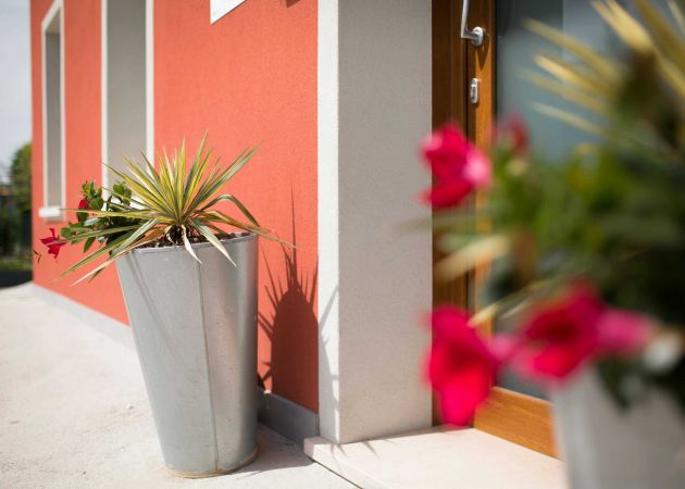 La struttura offre ampi spazi esterni, privi di barriere architettoniche con percorsi pavimentati in modo uniforme e senza ostacoli. In questo modo le zone verdi, il parcheggio, le terrazze e tutti gli ingressi esterni risultano facilmente accessibili.