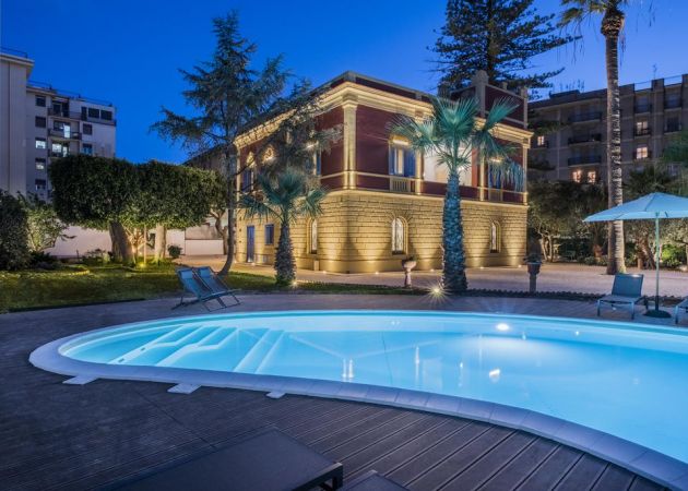 Un attento restauro ha permesso di rispettare la destinazione originale degli spazi della casa e molti decori sono stati fedelmente recuperati, come i pavimenti liberty ed alcune tracce degli affreschi sui soffitti. La villa è oggi un’oasi di storia e fascino nel centro città, in accurato equilibrio fra la funzionalità degli arredi moderni, la luminosità naturale grazie alle ampie finestre e vetrate a giorno, e la bellezza di alcuni pregiati pezzi di famiglia, che riporta l’ospite in un ambiente accogliente, tipico della tradizionale ospitalità delle storiche famiglie siciliane.
