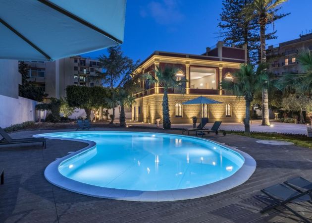 Il lussureggiante giardino di 3.500 mq con statue e fontane, l’orto siciliano, i viali all’ombra di alberi secolari, le eleganti e luminosissime sale interne come la sala da pranzo e il salone vetrato, la piscina sono tutti pensati per offrire agli ospiti una fuga in un angolo di fascino, alla scoperta di una Sicilia autentica.